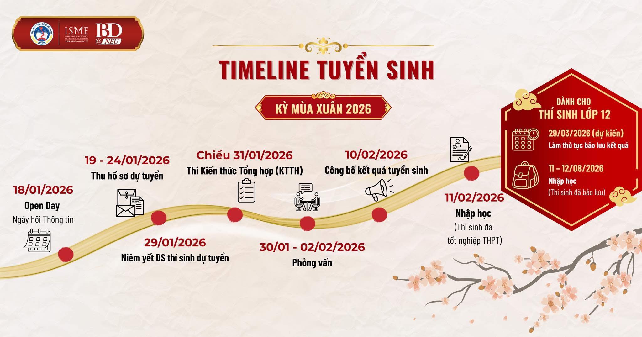 Để các bạn học sinh và quý phụ huynh thuận tiện theo dõi, Nhà trường xin gửi tới timeline tuyển sinh chi tiết cho kỳ Mùa Xuân 2026: