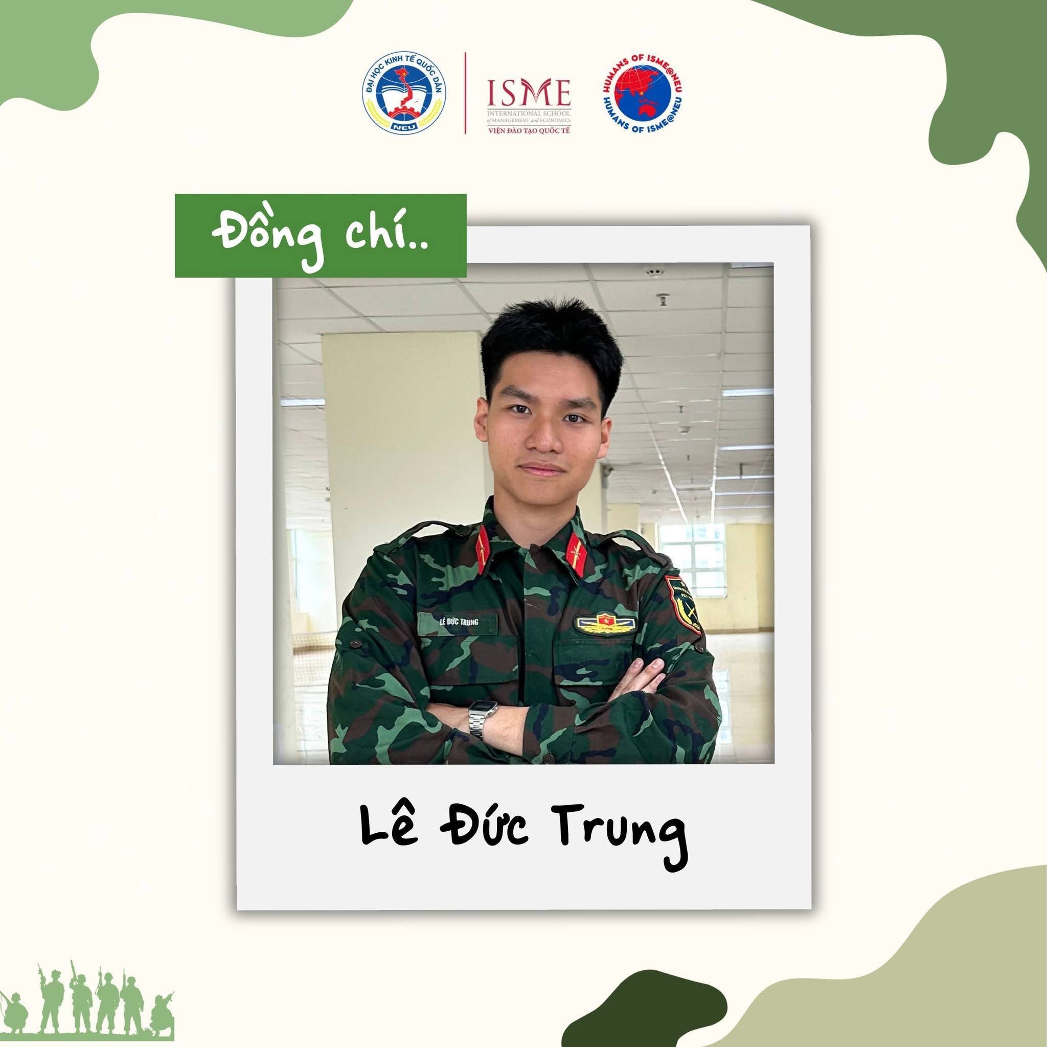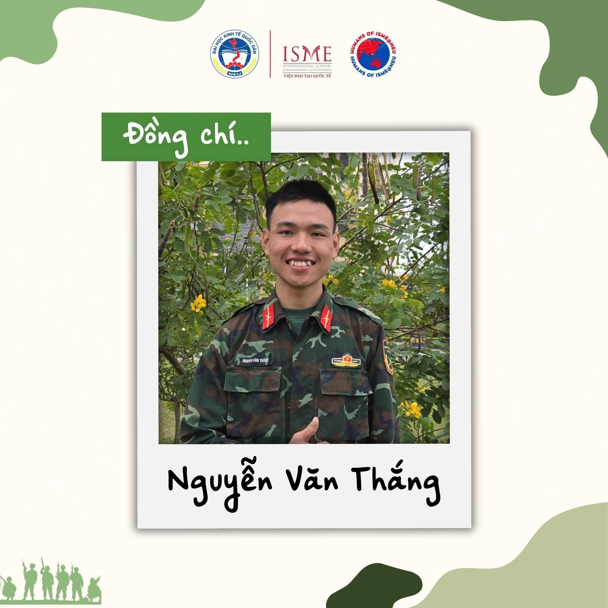 Trong những cuộc trò chuyện ngắn, Humans of ISME@NEU đã có cơ hội được nghe các anh Trung đội trưởng chia sẻ về một tuần vừa qua. Các anh kể về sự bỡ ngỡ ban đầu của các bạn sinh viên, về quá trình dần thích nghi, và đặc biệt là sự đáng yêu, lễ phép và tinh thần cố gắng của các bạn. Chính những điều rất nhỏ ấy đã tạo nên những kỷ niệm khó quên với các anh, dù thời gian gắn bó chỉ vỏn vẹn một tuần.