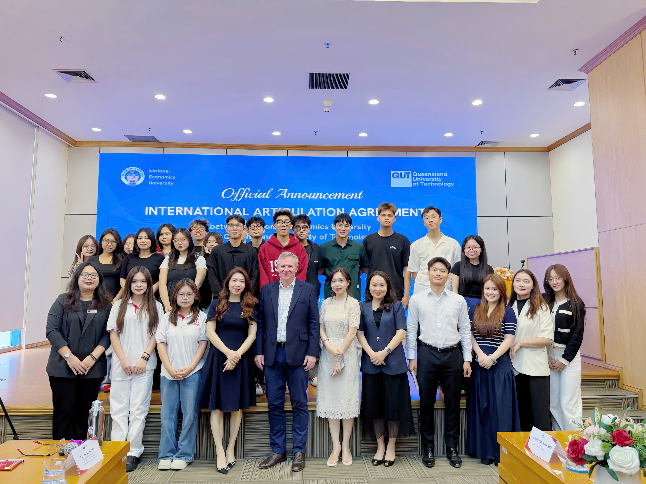 Xuyên suốt hành trình 70 năm hình thành và phát triển, ĐHKTQD luôn giữ vững vị thế là một trong những cơ sở giáo dục đại học hàng đầu Việt Nam trong lĩnh vực kinh tế, tài chính và quản lý. Trong tầm nhìn chiến lược của nhà trường, hợp tác quốc tế luôn được xem là nền tảng cốt lõi nhằm tạo dựng những kết nối bền vững xuyên biên giới và mở rộng cơ hội cho các thế hệ tương lai. Việc bắt tay cùng Đại học Queensland University of Technology (QUT) – một trong những đại học uy tín top đầu toàn cầu chính là sự cam kết của nhà trường trong việc mang đến trải nghiệm học thuật chất lượng cao và chuẩn bị hành trang vững chắc cho sinh viên trong môi trường quốc tế.