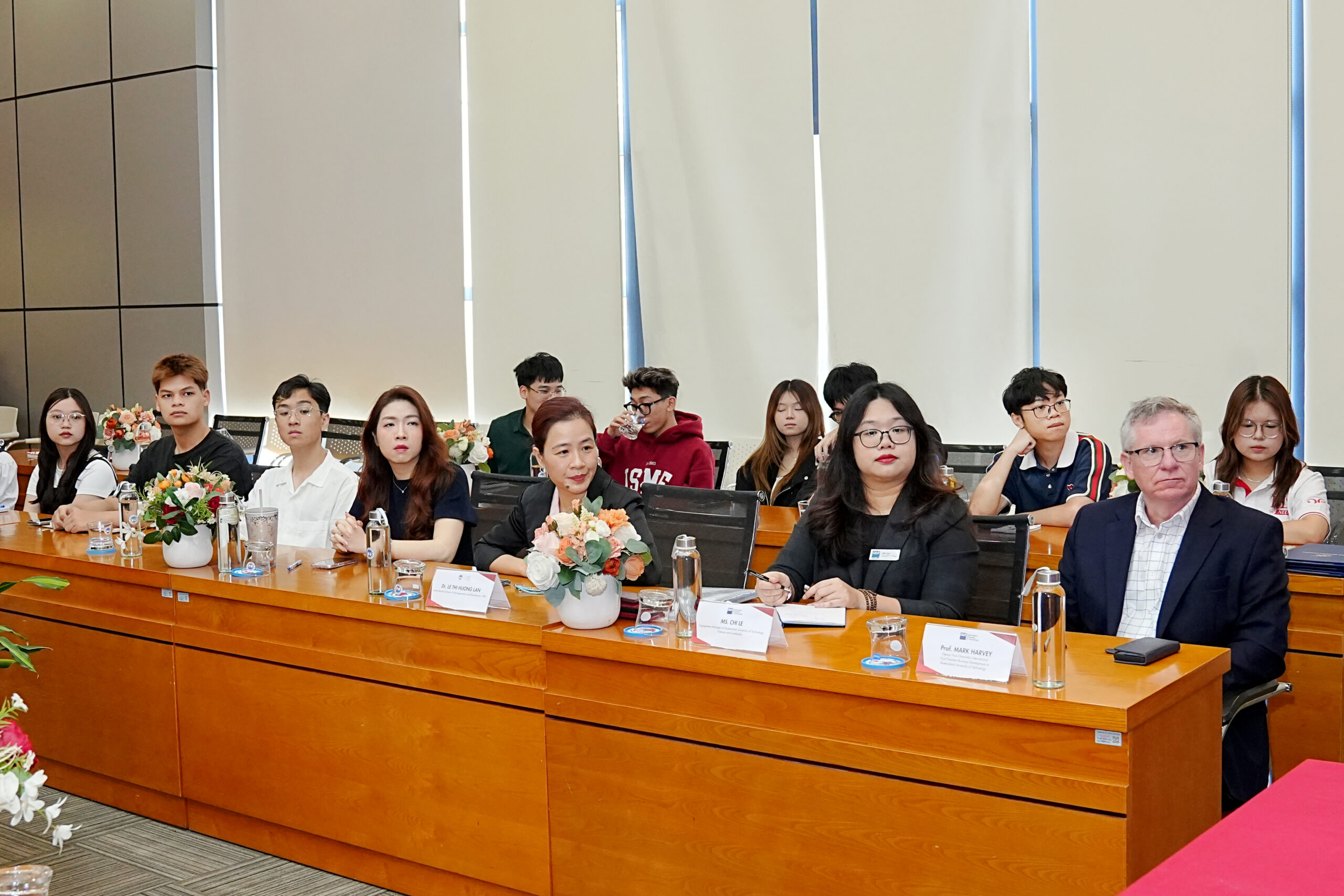 Phần cuối của buổi lễ diễn ra trong không khí sôi nổi khi hội trường đón nhận những câu hỏi trực tiếp từ các bạn sinh viên và phụ huynh đang quan tâm đến lộ trình du học tại xứ sở Kangaroo. GS. Mark Harvey cùng đoàn đại biểu tận tình giải đáp những thắc mắc xoay quanh điều kiện chuyển tiếp, các tiêu chí xét duyệt học bổng cũng như những trải nghiệm học thuật thực tế tại Australia. Sự tương tác trực tiếp và cởi mở này không chỉ cung cấp những thông tin thiết thực cho người tham dự mà còn một lần nữa khẳng định giá trị bền vững của mối quan hệ hợp tác giữa hai trường, mở ra một hành trình học tập đầy hứa hẹn cho các thế hệ sinh viên tiếp theo.