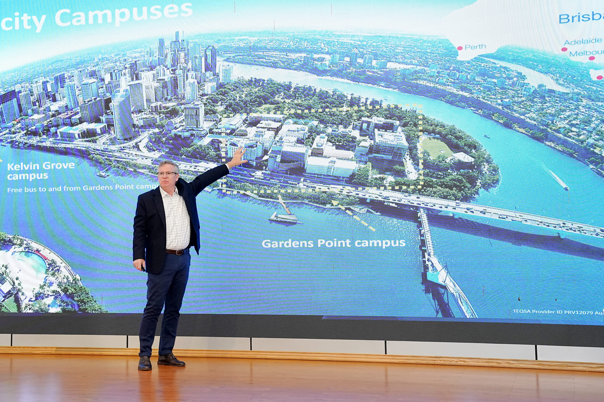 GS. Mark Harvey – Phó hiệu trưởng QUT trực tiếp cung cấp thông tin về cơ hội học tập, học bổng và chuyển tiếp tại QUT