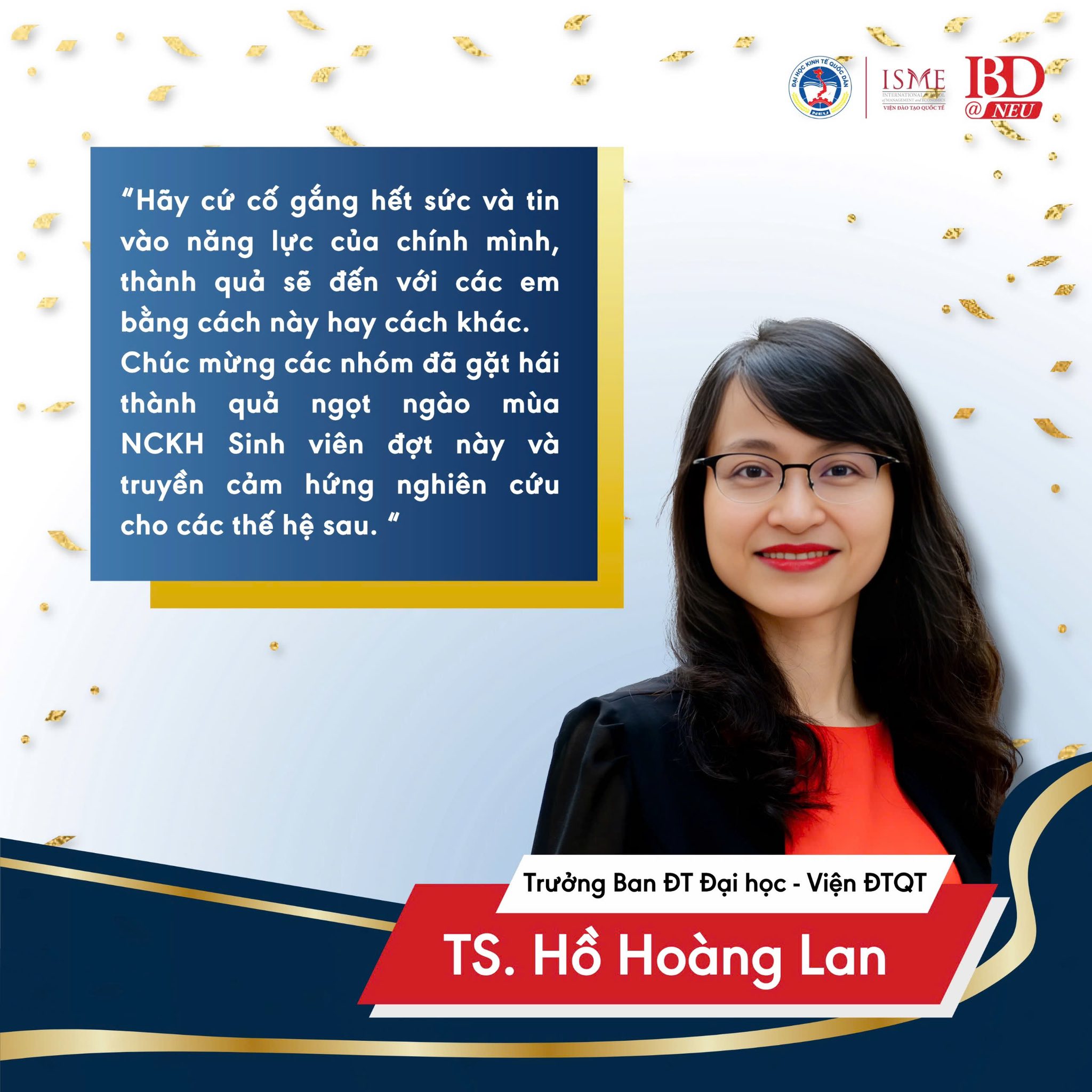 “Lâu rồi cô mới có dịp đồng hành cùng một nhóm sinh viên hăng say và cầu toàn đến vậy. Dù từng muốn xin rút vì chưa hài lòng với kết quả, các bạn vẫn quyết tâm đi đến cùng và đã được đền đáp xứng đáng. Đó cũng là tinh thần mà cô mong muốn sinh viên IBD luôn giữ vững – dám nghiên cứu, dám nỗ lực, và tin vào năng lực chính mình.”
