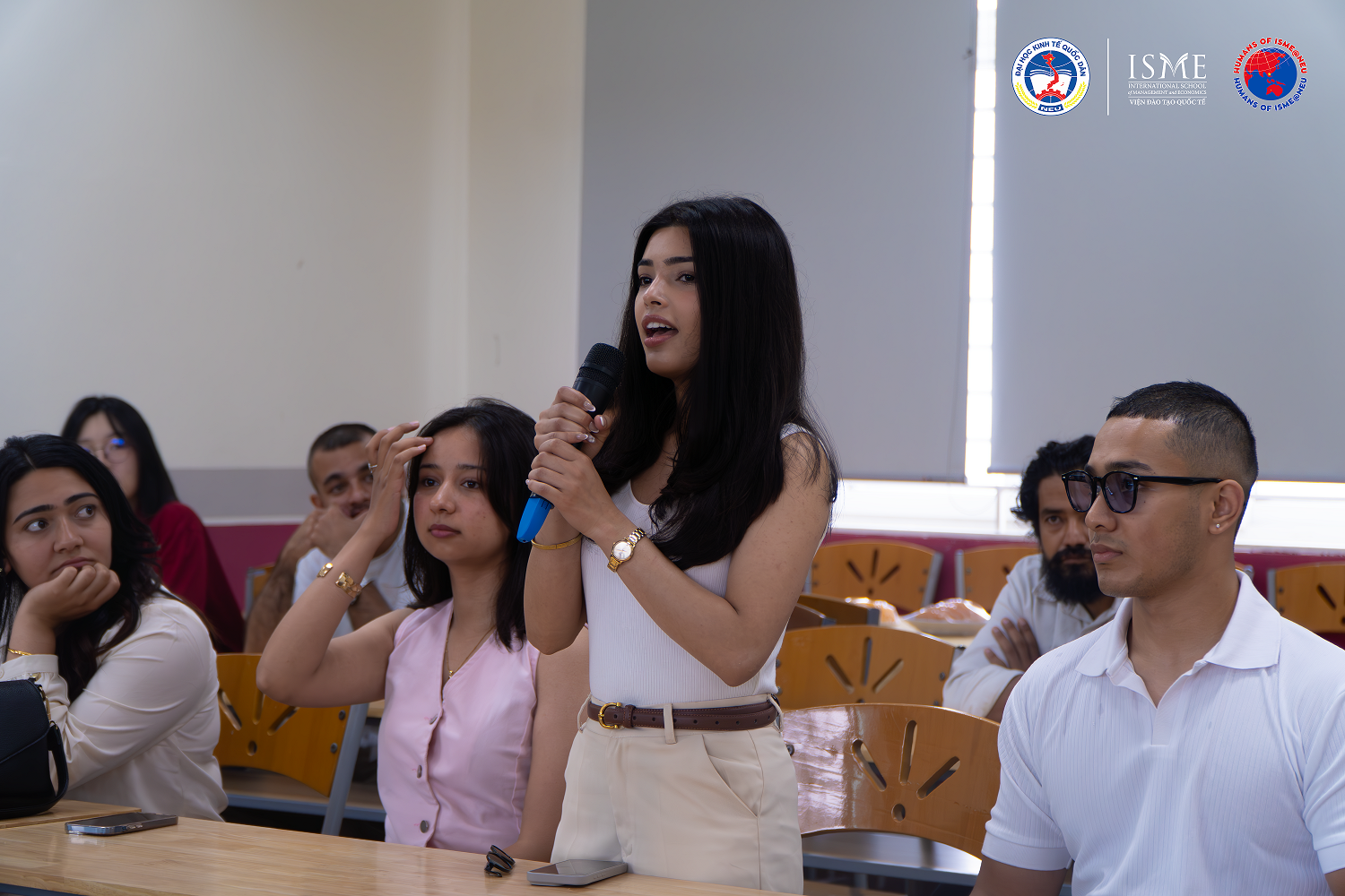 Ngày đầu tiên của chuyến giao lưu – 25/06/2025, đoàn cán bộ và sinh viên Softwarica College đã tham gia buổi seminar chuyên đề tại phòng 502, Tòa D2, với sự dẫn dắt của giảng viên Daniel Vanhoutte. Buổi seminar với chủ đề “Môi trường kinh doanh tại Việt Nam” đã mang đến cho sinh viên góc nhìn thực tiễn về kinh tế Việt Nam, đồng thời là cơ hội để sinh viên ISME@NEU và sinh viên Softwarica College giao lưu, trao đổi và chia sẻ.