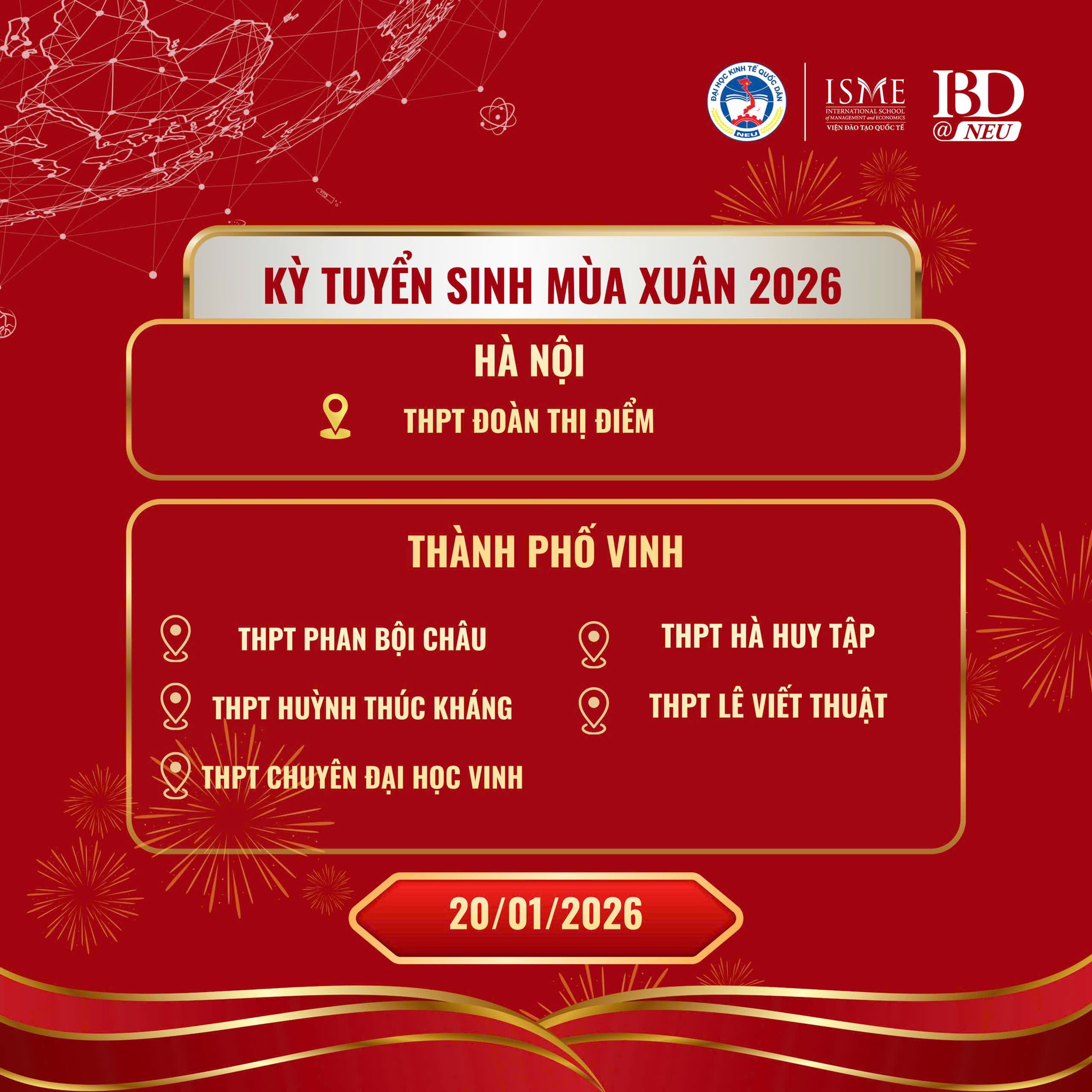 Đừng quên! Kỳ tuyển sinh IBD@NEU Mùa Xuân 2026 đang diễn ra, hạn nộp hồ sơ từ 19 – 24/01/2026.