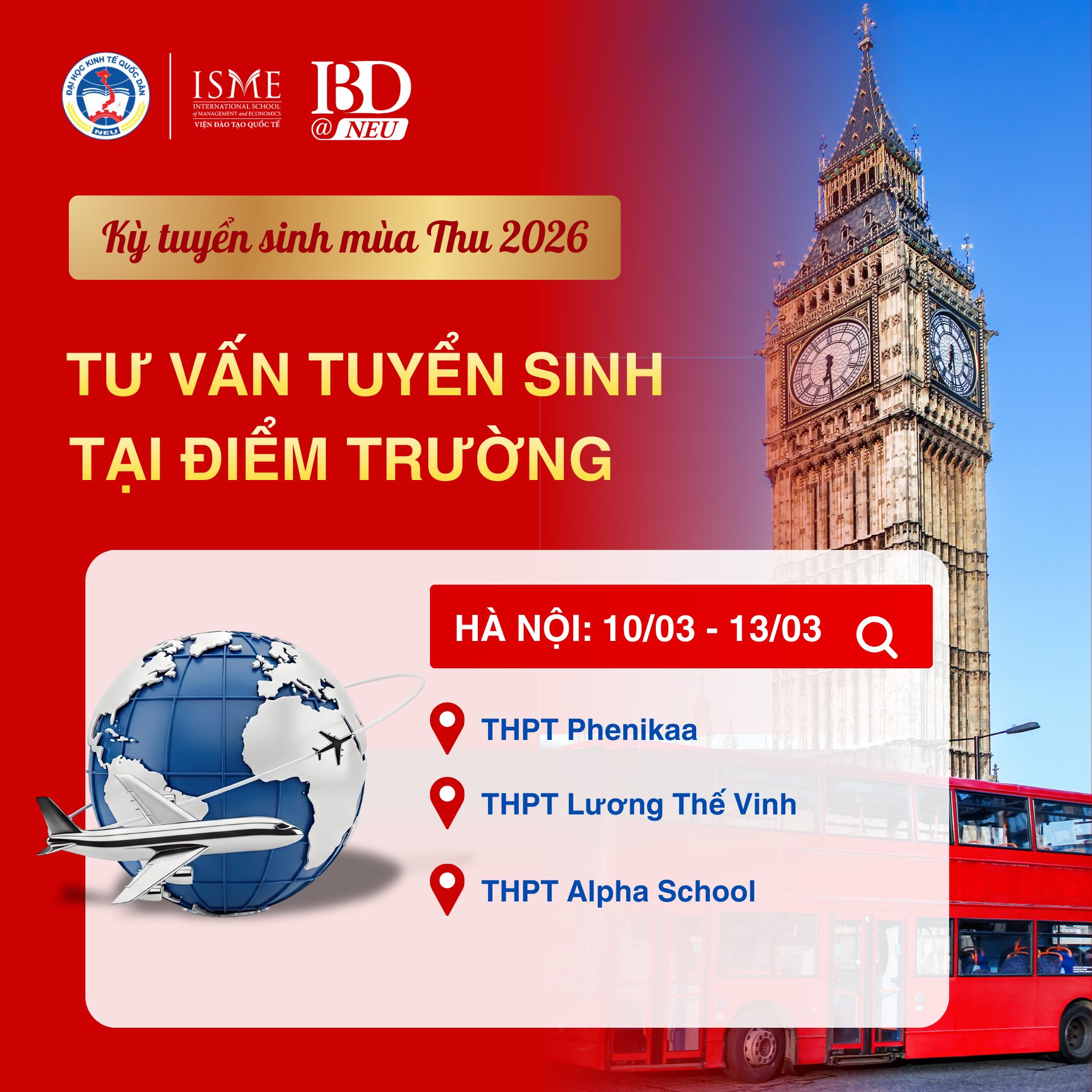 Tiếp nối hành trình, chiều 13/03/2026, 𝐈𝐁𝐃@𝐍𝐄𝐔 tiếp tục ghé thăm THPT Lương Thế Vinh – cơ sở Tân Triều và THPT Alpha School. Ba điểm trường, nhưng cùng một mục tiêu: giúp các bạn học sinh có thêm góc nhìn rõ ràng hơn về lựa chọn đại học và khám phá môi trường học tập chuẩn quốc tế tại 𝐈𝐁𝐃@𝐍𝐄𝐔.