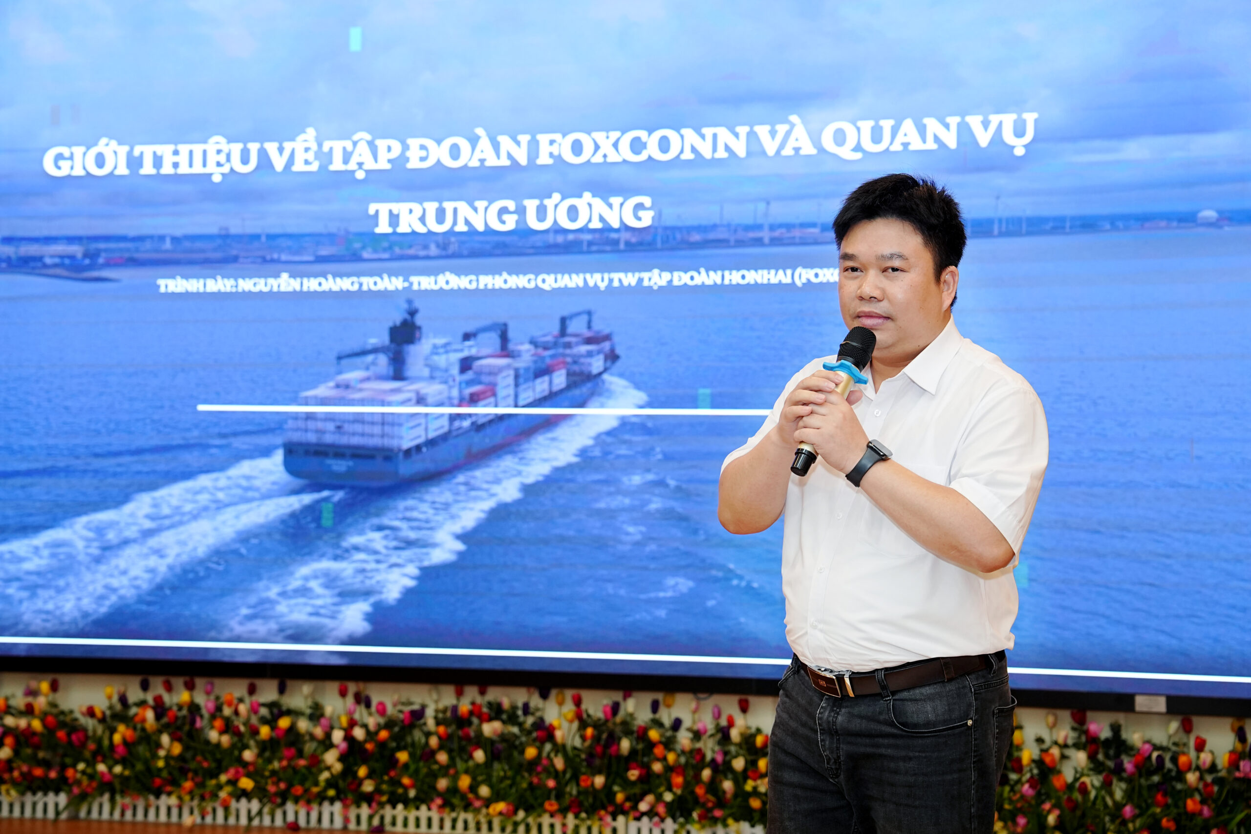 Cũng tại buổi Tọa đàm, ông Nguyễn Hoàng Toàn, Trưởng phòng Quan vụ Trung ương, Tập đoàn Foxconn đã trực tiếp chia sẻ về thực trạng chuỗi cung ứng tại Việt Nam, đồng thời chỉ ra những thách thức và hạn chế về chất lượng nguồn nhân lực. Ông nhấn mạnh chiến lược “chuyển đổi dựa trên tri thức” mà Foxconn đang triển khai, trong đó con người là yếu tố trung tâm, kết hợp với việc ứng dụng dữ liệu và công nghệ nhằm tối ưu hóa hoạt động sản xuất. Song song với đó, doanh nghiệp không ngừng mở rộng tuyển dụng và đào tạo trong lĩnh vực logistics và chuỗi cung ứng để đáp ứng nhu cầu phát triển trong bối cảnh toàn cầu nhiều biến động.