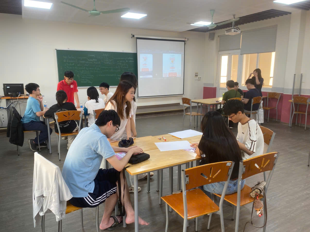 Các bạn thí sinh cùng làm việc nhóm dưới sự hỗ trợ của anh chị sinh viên IBD@NEU