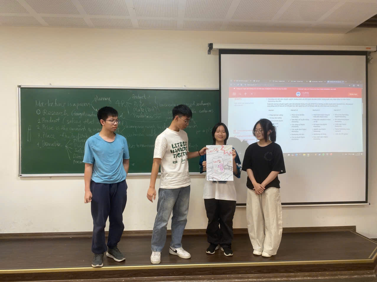 Điểm nhấn đặc biệt của chương trình chính là hoạt động thiết kế poster Marketing theo nhóm – nơi các bạn được áp dụng ngay những gì đã học. Các đội cùng nhau: xác định khách hàng mục tiêu, xây dựng thông điệp truyền thông, lựa chọn hình ảnh và cách trình bày phù hợp. Không khí lớp học trở nên vô cùng sôi nổi khi các ý tưởng sáng tạo liên tục được đưa ra; những bản thiết kế đầy màu sắc dần hình thành qua từng phút làm việc nhóm.