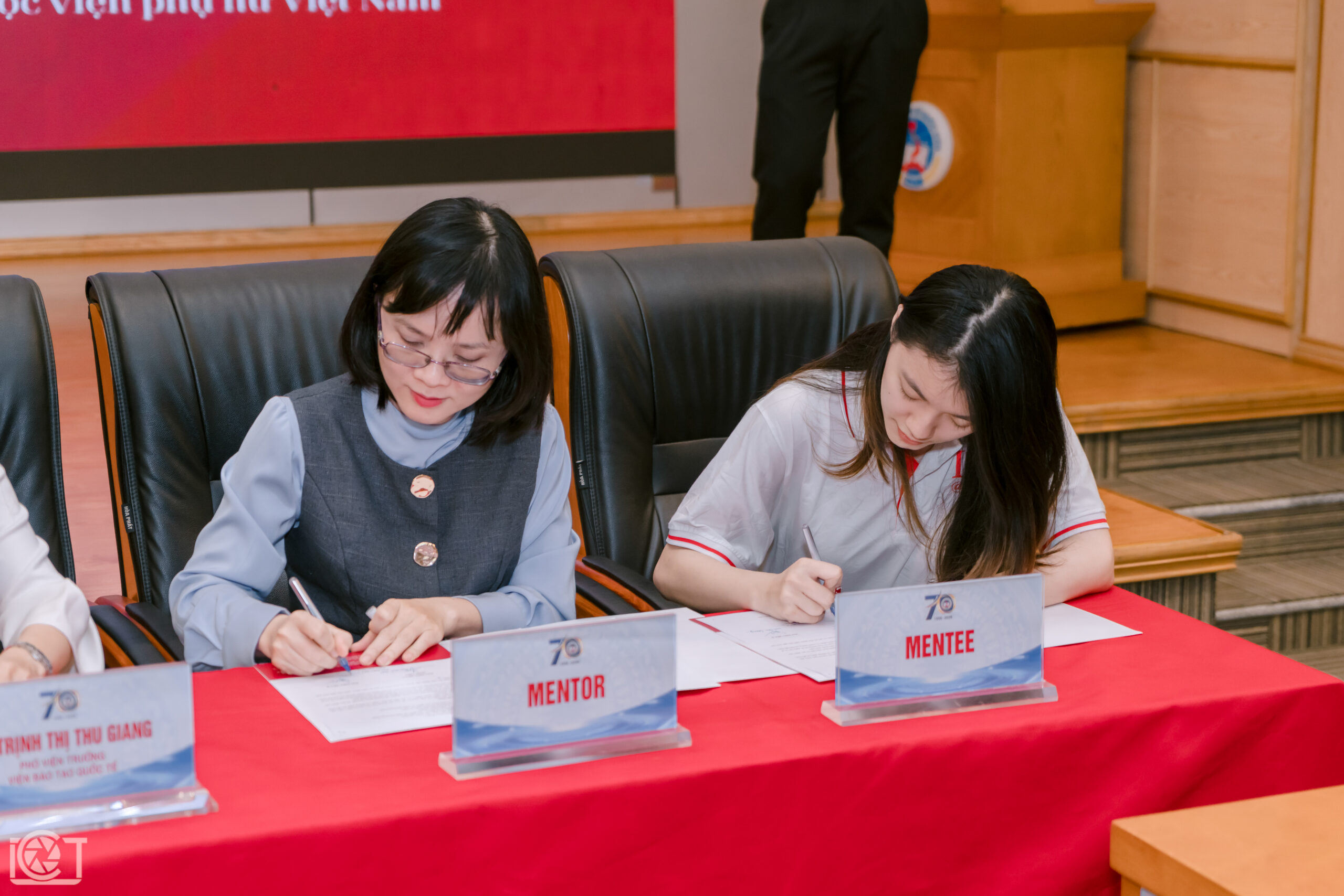 Một trong những điểm nhấn của buổi lễ là nghi thức ký kết cam kết giữa ba bên: Viện ĐTQT, Mentor và Mentee. Nghi thức thể hiện tinh thần trách nhiệm và sự đồng hành xuyên suốt giữa các bên trong hành trình mentoring, đồng thời đánh dấu cột mốc khởi đầu cho quá trình hợp tác và phát triển của mỗi mentee. Hơn cả một lời cam kết về trách nhiệm và sự gắn bó, đây chính là minh chứng cho niềm tin kiên định, sự đồng hành trọn vẹn và khát vọng kiến tạo nên những giá trị chung bền vững.