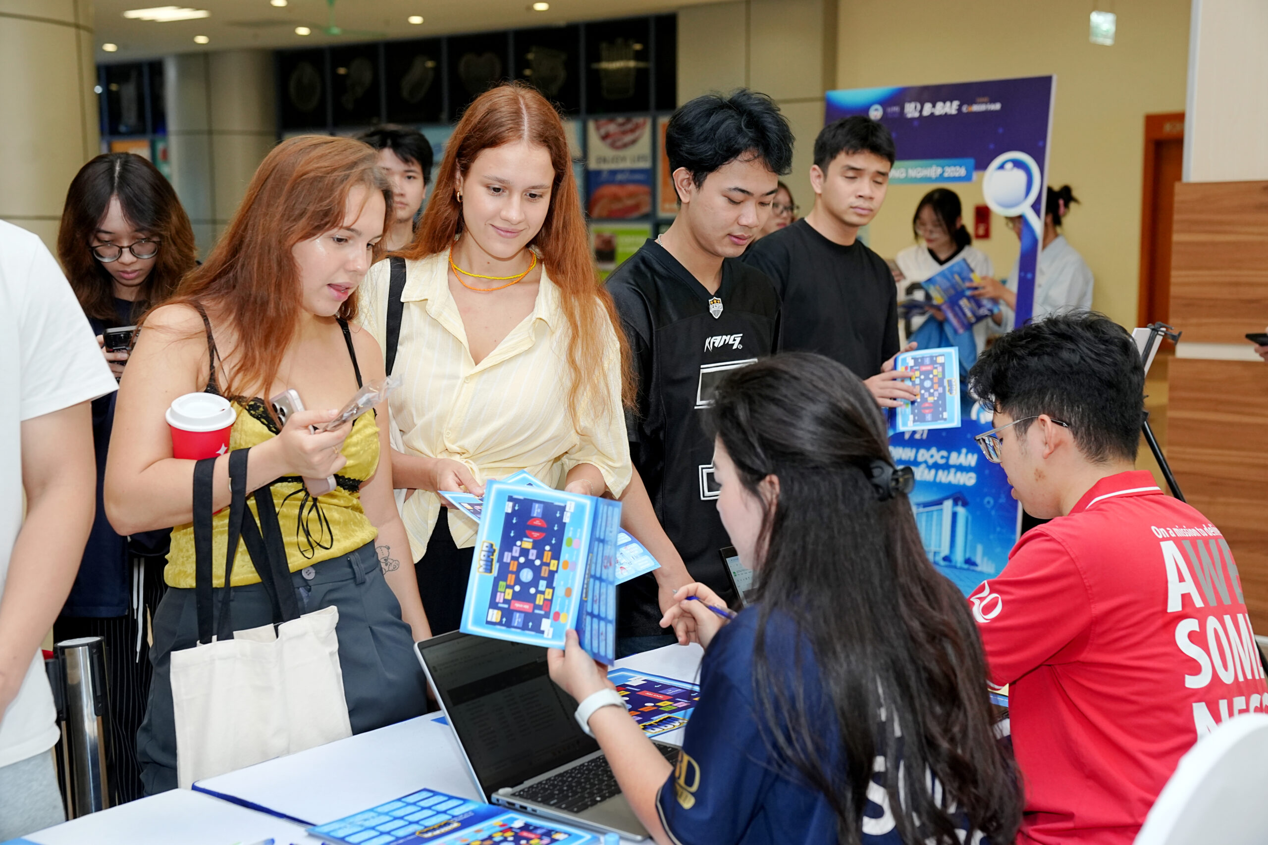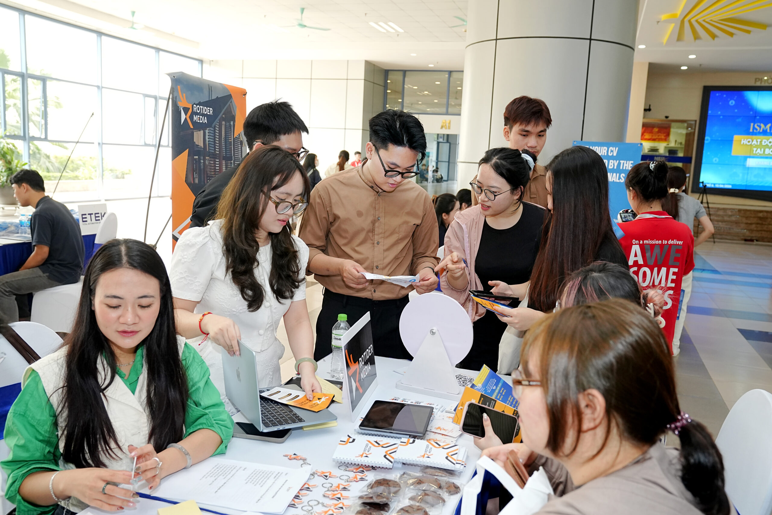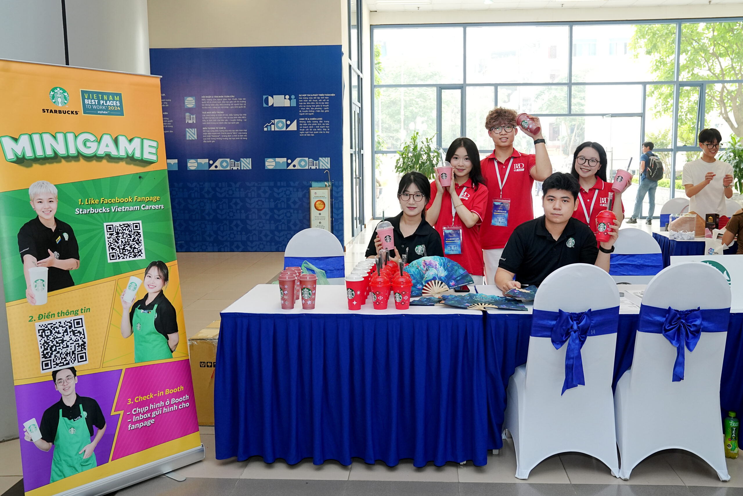 Không gian sự kiện càng trở nên sôi động với sự góp mặt của nhiều Doanh nghiệp và thương hiệu toàn cầu trong và ngoài nước như MK Smart, Starbucks Việt Nam, Heineken Việt Nam, Ngân hàng MSB, Skilio, Rotider Media, Andrews University, Nón Nhà, Pince Care, Voccupa Café, ETEK, EV và Chương trình Thạc sĩ Quốc tế IMD@NEU. Sự đa dạng về lĩnh vực đã mang đến cho sinh viên cái nhìn toàn diện hơn về thị trường lao động, đồng thời mở rộng cơ hội kết nối và phát triển nghề nghiệp.