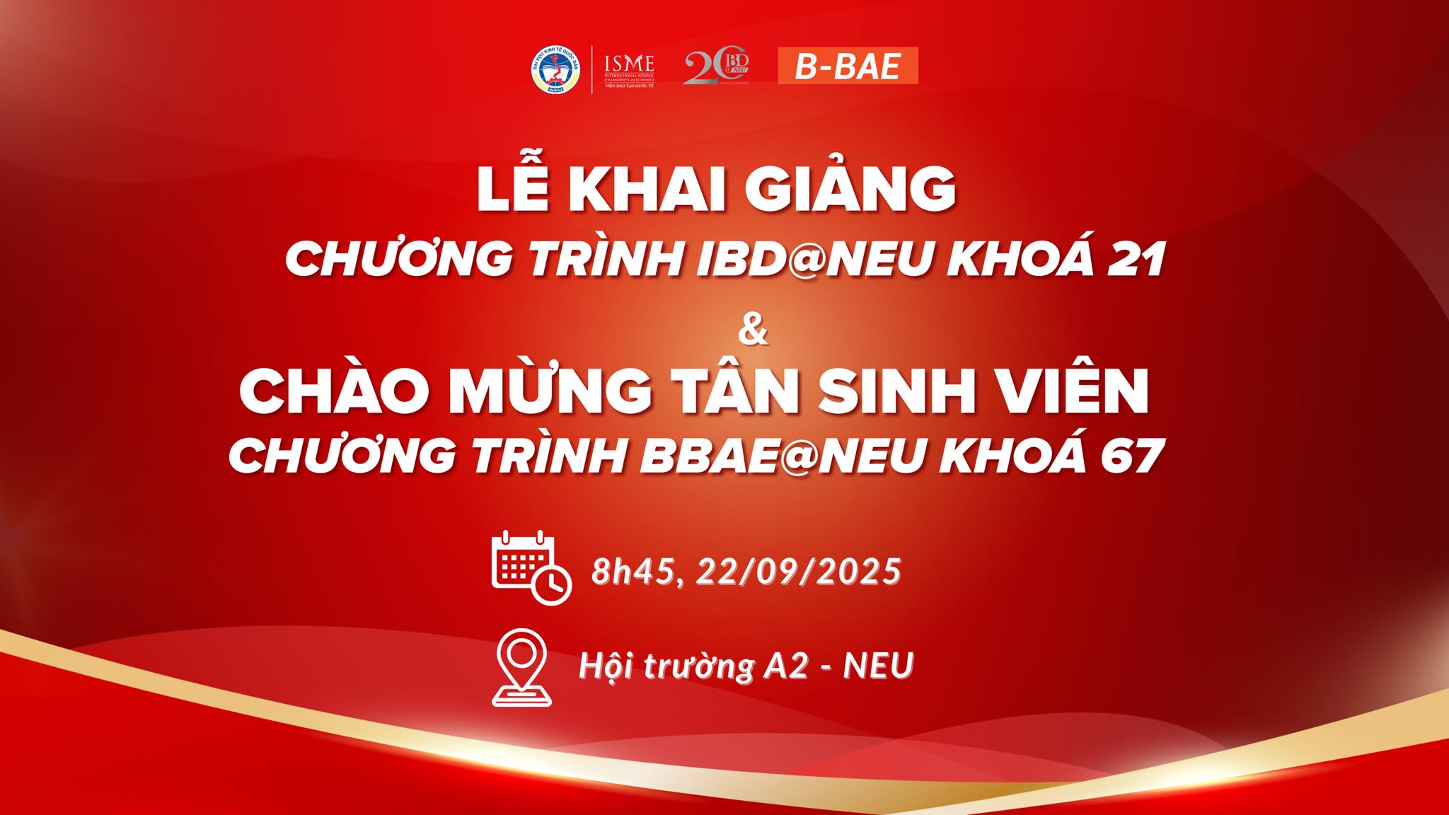 Viện Đào tạo Quốc tế, Đại học Kinh tế Quốc dân trân trọng kính mời quý vị phụ huynh và học sinh quan tâm tới tham dự Ngày hội Giới thiệu thông tin tuyển sinh chương trình Cử nhân Quốc tế IBD@NEU và Chương trình Cử nhân Khởi nghiệp & Phát triển Kinh doanh BBAE@NEU vào sáng Chủ nhật, ngày 18/5/2025