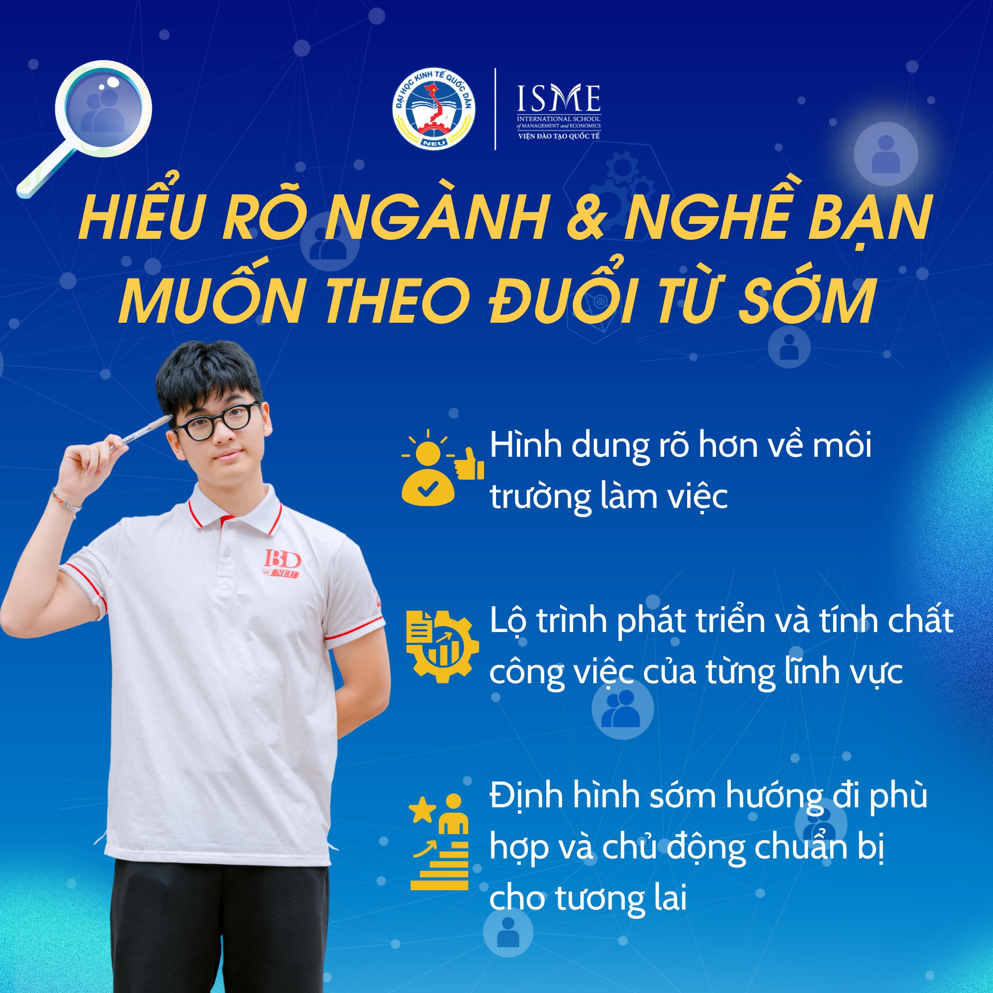 Nhiều sinh viên vẫn gặp khó khăn khi tìm hiểu cơ hội nghề nghiệp, chưa rõ quy trình ứng tuyển hoặc còn mơ hồ về định hướng tương lai. Trong bối cảnh đó, ISME Career Fair là cơ hội để bạn tiếp cận trực tiếp với doanh nghiệp, đồng thời có cái nhìn thực tế hơn về ngành nghề, kỹ năng cần thiết và nhu cầu của thị trường lao động.