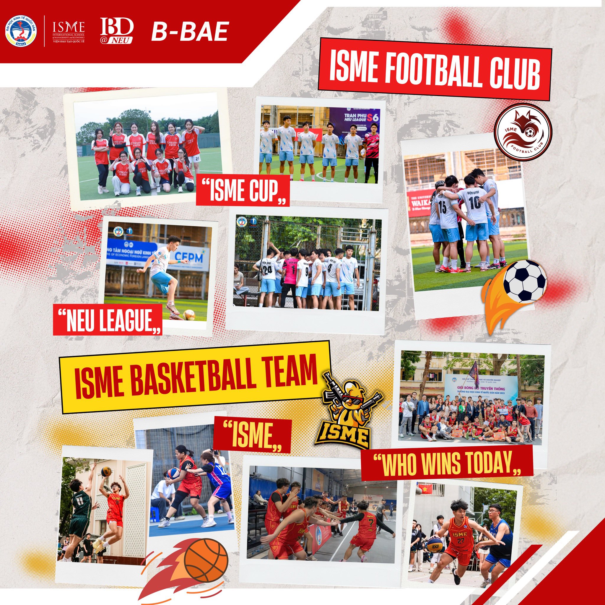 ISME Basketball Team & ISME Football Club: CLB Bóng rổ và Bóng đá, nơi bùng nổ tinh thần thể thao, rèn luyện sức khỏe và gắn kết đồng đội.