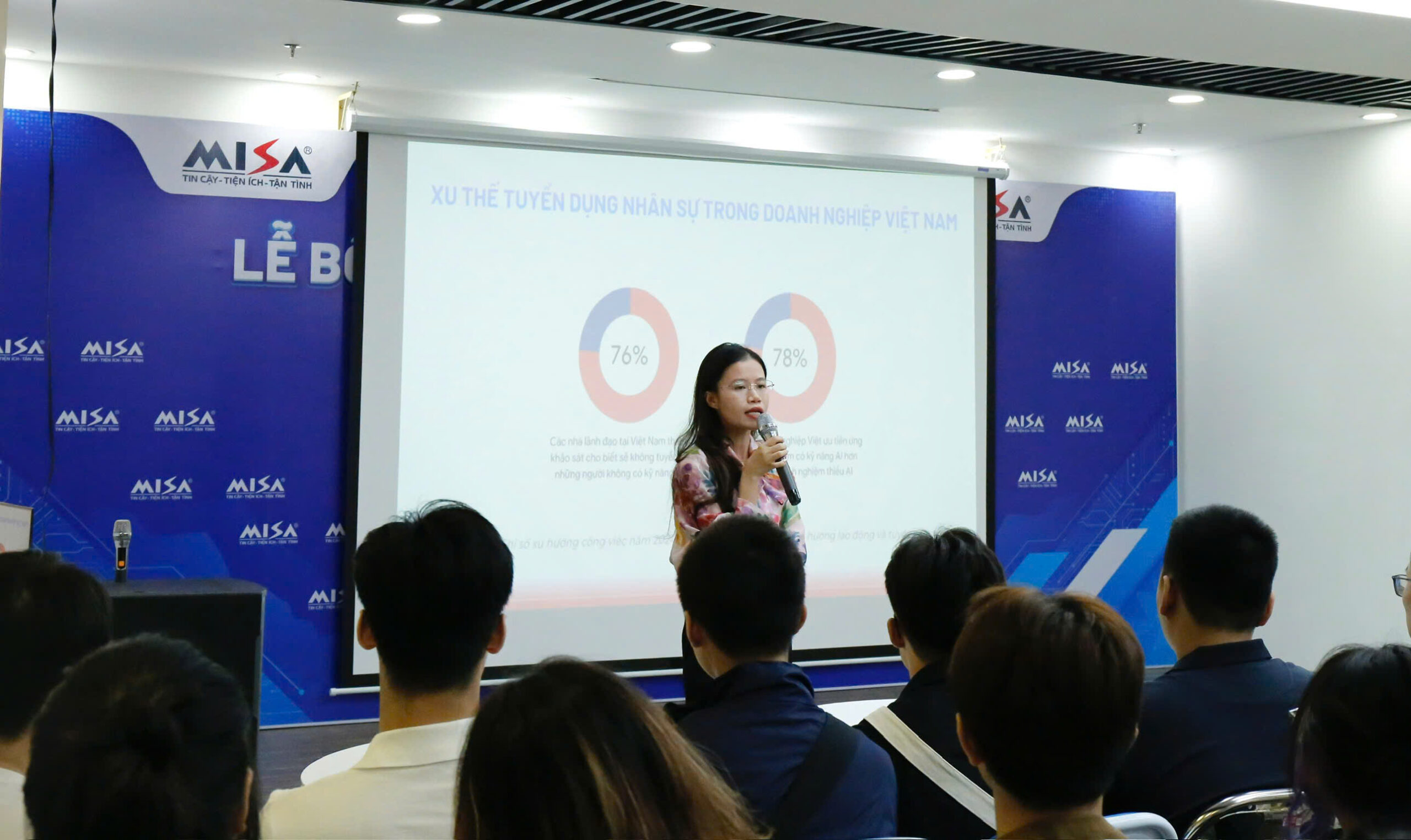 Không chỉ dừng lại ở những chia sẻ lý thuyết, đại diện MISA còn giới thiệu MISA Future Marketer Program 2025 – chương trình thực tập kéo dài 3 tháng, tạo điều kiện cho sinh viên được tham gia vào các dự án thực tế tại doanh nghiệp. Đây là cơ hội để các bạn áp dụng kiến thức đã học, tích lũy kinh nghiệm và định hình rõ hơn con đường sự nghiệp của mình.