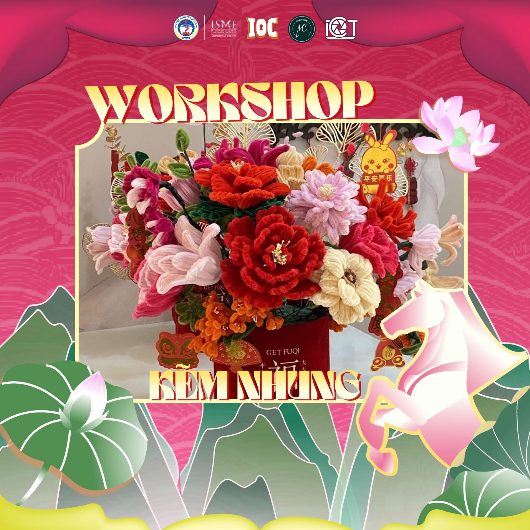 Workshop kẽm nhung: Trải nghiệm làm nút thắt đồng tâm hoặc cành đào kẽm nhung, tự tay tạo nên sản phẩm mang sắc xuân.