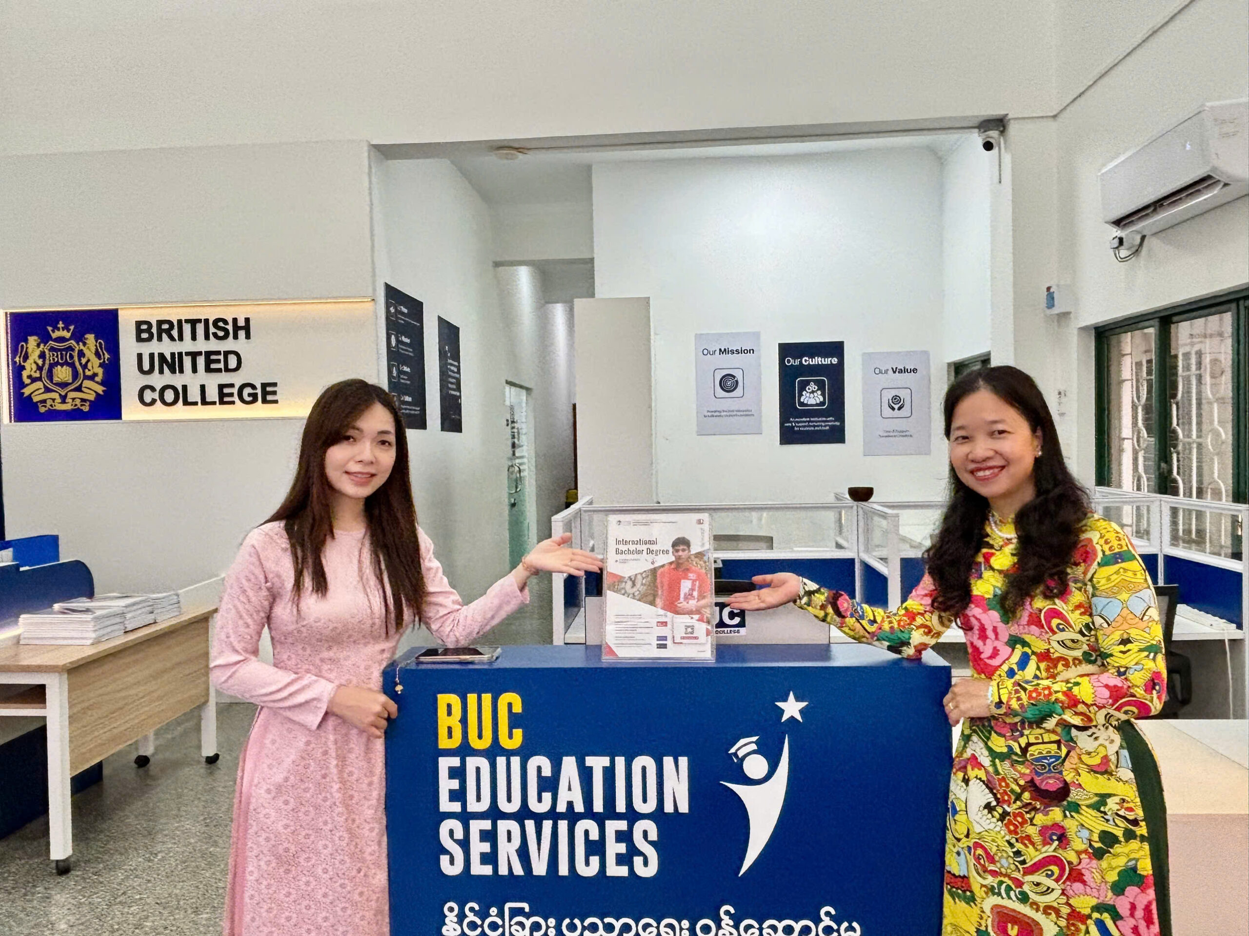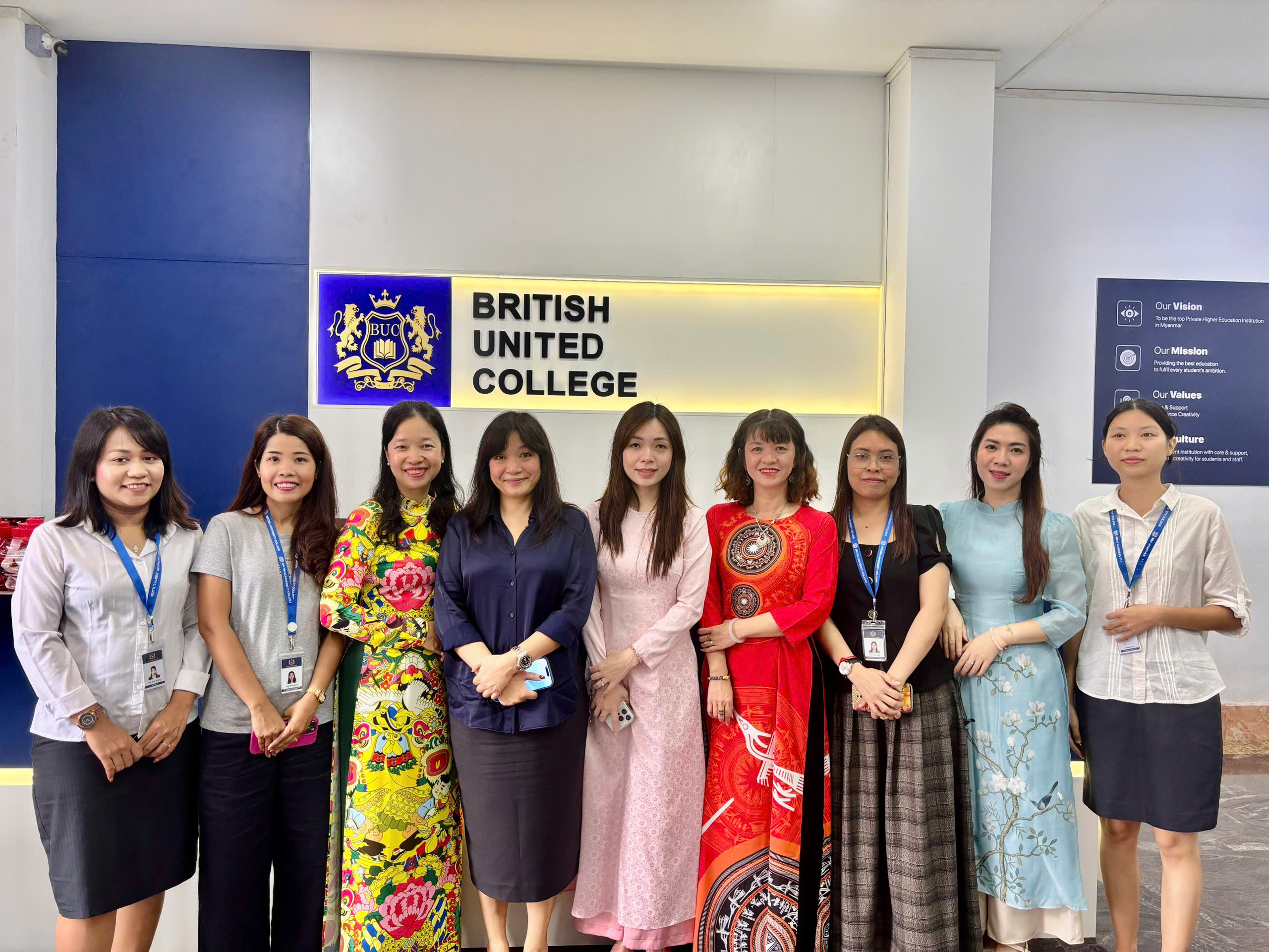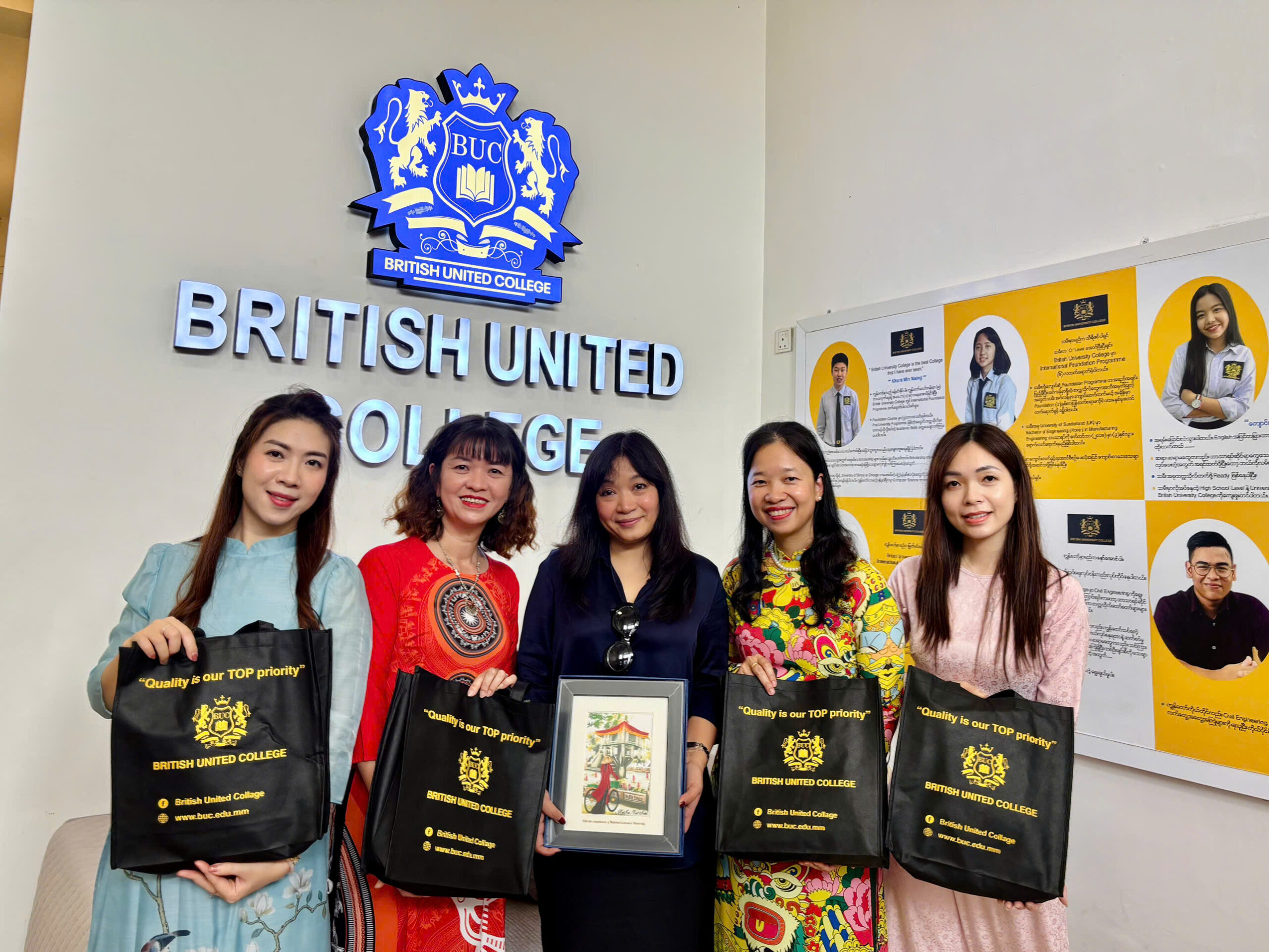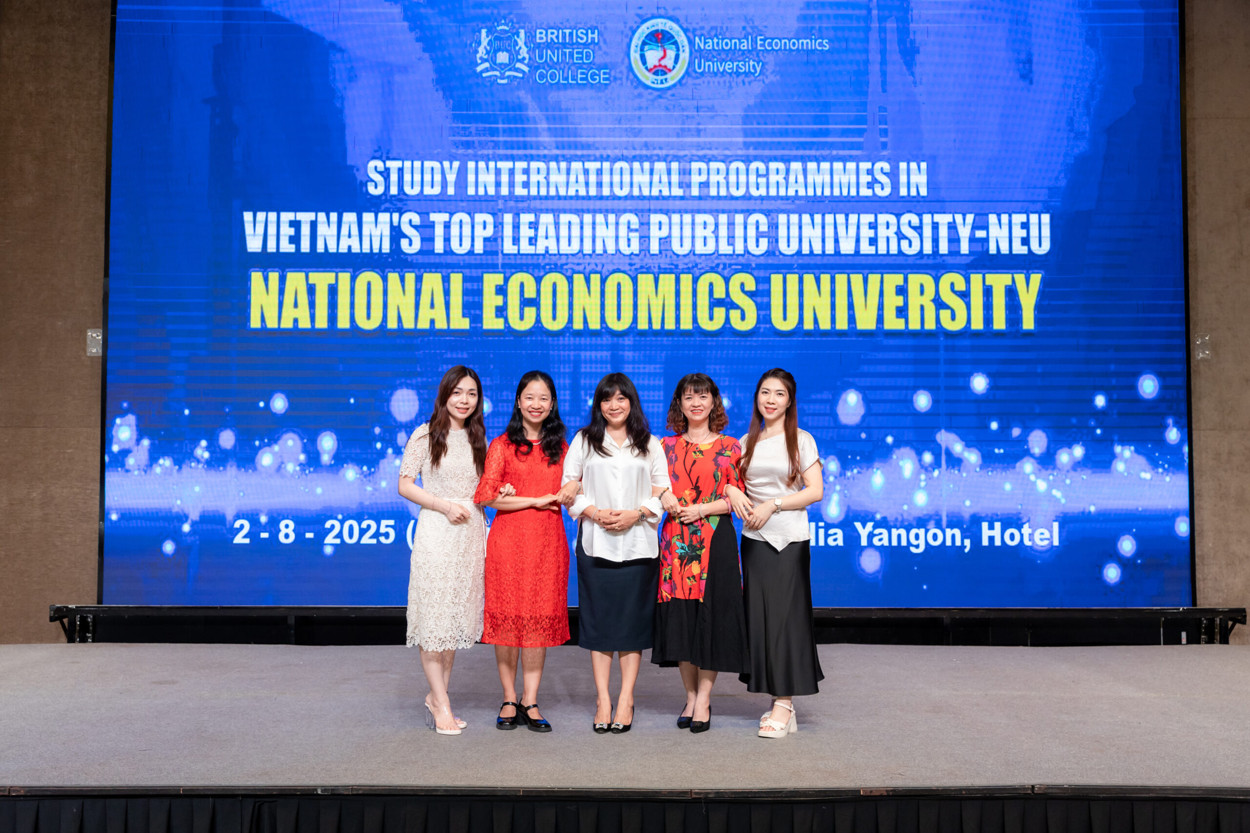 Từ ngày 2/8 đến ngày 4/8/2025 vừa qua, đoàn công tác của Đại học Kinh tế quốc dân, Viện Đào tạo Quốc tế (ĐTQT) đã tới thăm, làm việc chính thức cùng Trường quốc tế British United College (BUC) và phối hợp tổ chức Hội thảo Tư vấn cơ hội học tập, học bổng quốc tế tại Việt Nam cho sinh viên BUC tại Yangon, Myanmar.